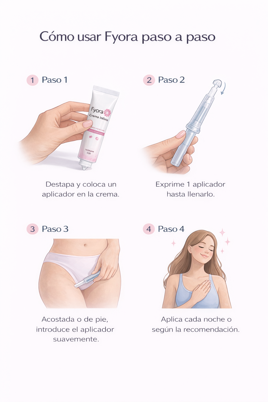 Cada vez que usaba óvulos sentía que empeoraba antes de mejorar… con Fyora fue diferente. No ardió, no incomodó y en días me sentí normal otra vez.